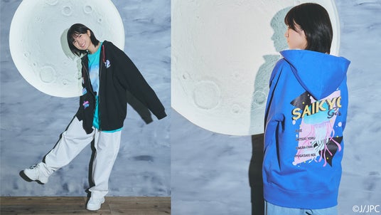 JELEEの楽曲「最強ガール」をイメージしたフルジップタイプのパーカー。オリジナルのクラゲのアイコンと、背面にプリントされたメンバーネームが特徴的なアイテム。ブルー・ブラックの全2色で展開。