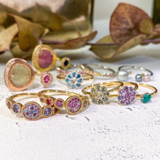 『ストーンマルシェ』では、バイヤーが買い付けたばかりの新しいルース(宝石)が毎月100石以上並びます。しかも価格は通常の半額以下。ルースそのものの輝きと美しさをじっくりと堪能した後は、リングやピアス、ペンダントなど、お客様だけのオリジナルジュエリーへのお仕立ても承ります。