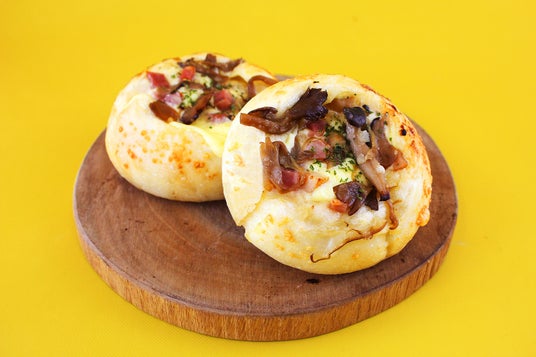 のびるチーズを包んだフランスパン生地に、ダイスベーコン・きのこ・ガーリックマーガリンをトッピングして焼き上げました。一口食べるとチーズが溶け出し、香り豊かなきのこの味わいとごろっとしたベーコンの食感を楽しめます。