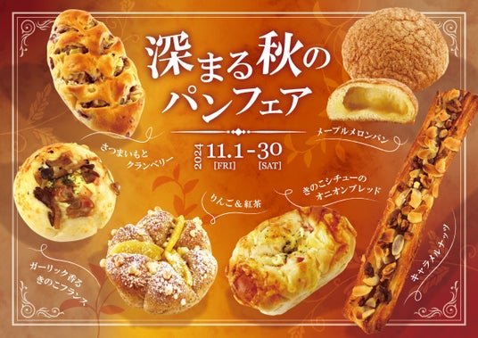 株式会社阪急デリカ(本社:大阪府池田市、代表取締役社長:森川保)が運営する『阪急ベーカリー』では、2024年11月1日(金)より、深まる秋のパンをテーマに全6種類の新商品を発売いたします。