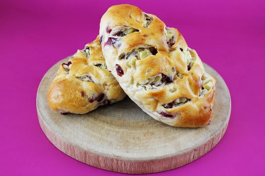 ドライクランベリーを練り込んだ生地に紅はるかダイスを包み、焼き上げました。クランベリーの甘酸っぱさと、さつまいもの優しい甘さに心がほくほくする一品です。