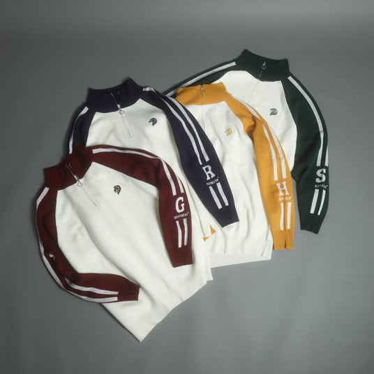 ハーフジップニットやフーディー、プルオーバーは各寮のエンブレムをポイントに、日常使いしやすいアイテムに仕上げました。また、同様にニットキャップとソックスもラインアップ。