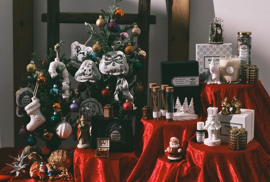 今年のギフトシーズンのテーマ「HAPPY LOOP」を表現するアロマオーナメントやサシェオーナメントたち。