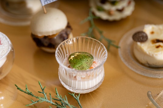 クリスマスにぴったりのプティブッシュドノエルや、降り積もる雪をイメージしたベリーのティラミス、冬に薫り高いトリュフのグラチネなど、まるで宝箱のようなゴールドに輝くBOXに彩られた、“8種のスイーツ&セイボリー”。コース仕立てが特徴となり、BOX他、一品目にシグネチャーの“フォアグラマカロン”、スペシャリテのとろけるくちどけの“焼き立てフレンチトースト“、淡路島で育てられた希少な生乳“匠”をパティシエがその場で出来立てのジェラートをおつくりいたします。今季しか味わえない「コフレ・ド・ノエル」を存分にお楽しみください。