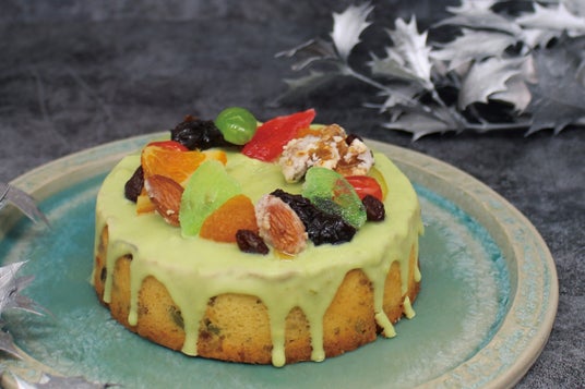 9種類のドライフルーツを洋酒をきかせた生地にたっぷりと入れて焼き上げた大人のパウンドケーキに、濃厚なピスタチオショコラをコーティングしました。クリスマスリースをイメージした、見た目も可愛い今年新登場のクリスマス限定のスイーツです。