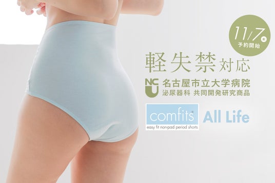 軽失禁に悩む方へ。名古屋市立大学病院との共同研究商品でもある吸水ショーツcomfitsが、さらなる進化を遂げ、高機能型の吸水ショーツcomfits「All Life」となりました。