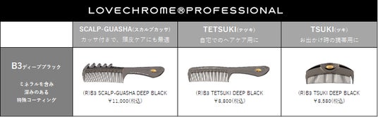 「B3ディープブラック」シリーズは、LOVECHROME(R)PROFESSIONALだけに採用する新色。ミネラルを含む特殊コーティングにより耐熱性と耐久性を向上。通常のモデルと比較し、より厚みを増した皮膜により深くツヤのある黒色を実現。