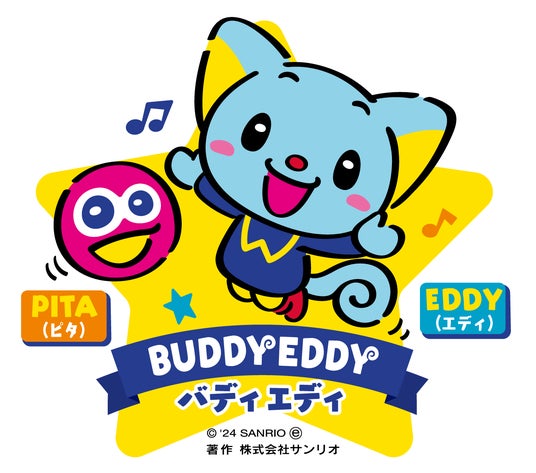 幼児への実証実験の結果をもとに本教材のために開発したオリジナルキャラクター「BUDDYEDDY(バディエディ)」のぐるぐるしっぽが特徴のEddy(エディ)をメインに、お友だちのPita(ピタ)やサンリオの人気キャラクターたちも登場します。