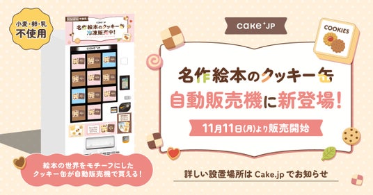 ケーキ専門通販サイト「Cake.jp(ケーキジェーピー)」を運営する株式会社Cake.jp(本社:東京都 新宿区、代表取締役:高橋 優貴)は、大好評の「名作絵本のクッキー缶」シリーズが購入できる自動販売機をマルイ・モディ一部店舗にて11月11日(月)より設置いたします。