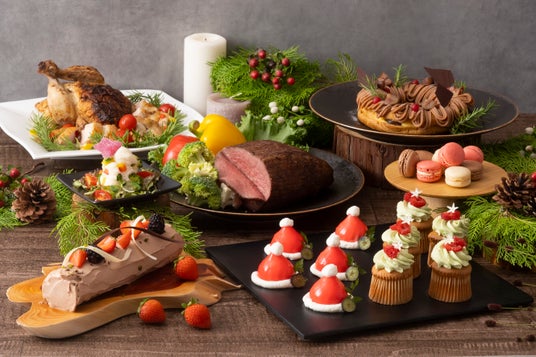 “丸ごとローストチキン”やシェフ特製“ローストビーフ”を、お客様の目の前で切り分けるカービングサービスもございます。パティシエ特製“ブッシュドノエル”、サンタクロースを模した可愛いスイーツなどもご用意いたしますので、早めのホリデーシーズンを、ご家族や大切な方とご一緒にご堪能ください。