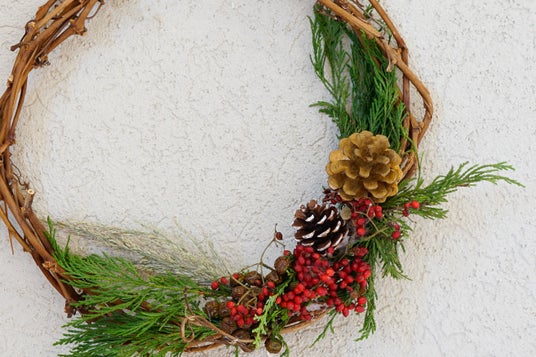 “つる”は事前に丸めて形をつけてありますのでお子さまでもご参加いただけます。“つる”に飾りをつけ完成したリースは、クリスマスが過ぎた後にもお正月用としてお使いいただけますので、ぜひ、ご家族お揃いでご参加ください。
