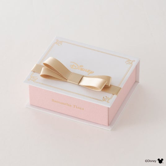 リボンとハートのモチーフを合わせて、「ミニーマウス」のやさしく愛らしい魅力を表現しました。細身のリングは重ね付けにもオススメ。「ミニーマウス」のようにキュートでポップな気持ちになれる、さりげなくも洗練されたデザインのジュエリーです