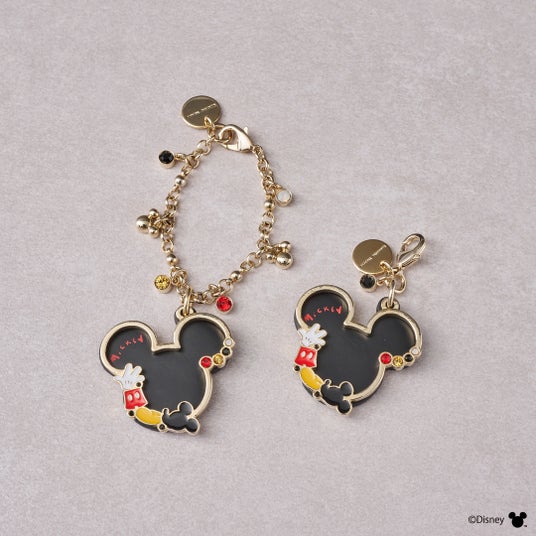 レッド、イエロー、ブラック、ホワイトの「ミッキー」を連想させるカラービジューがキラキラと輝きをプラスして、華やかな印象に。