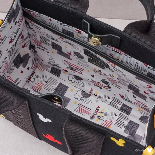 ランダムにデザインされた「ミッキー」のシルエットがレッド、ホワイト、イエローとカラーが異なるのもポイント。裏地にもオリジナルの総柄がデザインされていて、内側まで「ミッキー」の世界観を楽しめるバッグ。
