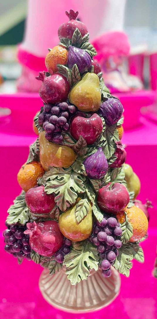 ザクロ、洋ナシ、ブドウなどさまざまなフルーツがモチーフのツリー。ベルギーブランド。