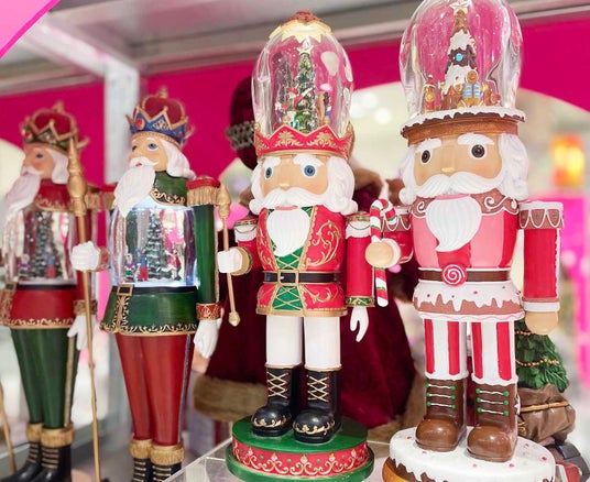 帽子や体が美しく光るオルゴール付きのくるみ割り人形。