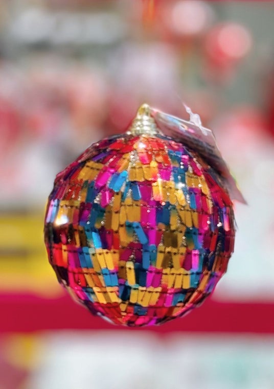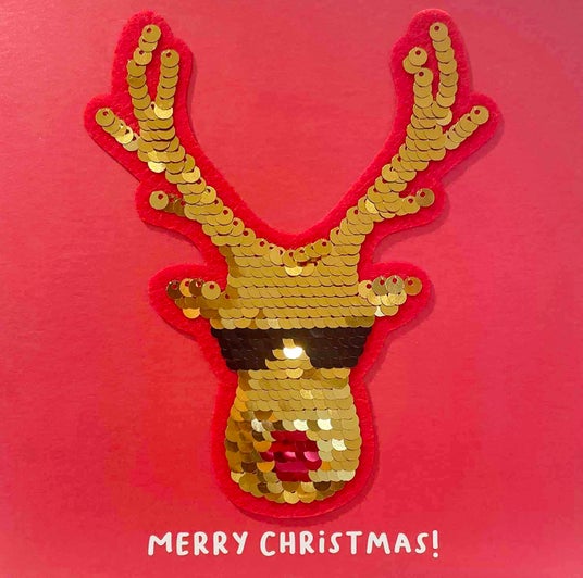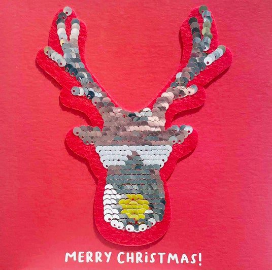 カラフルなスパンコールのクリスマスカード。指でなでるとカラーが変わるリバーシブルデザイン。