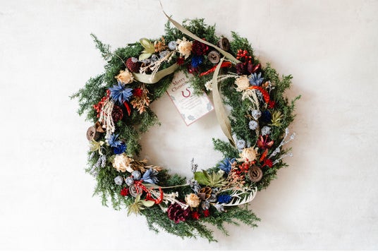 絶妙な配色や花材を使用した、鮮明で美しい発色のプリザーブドフラワーのリース。