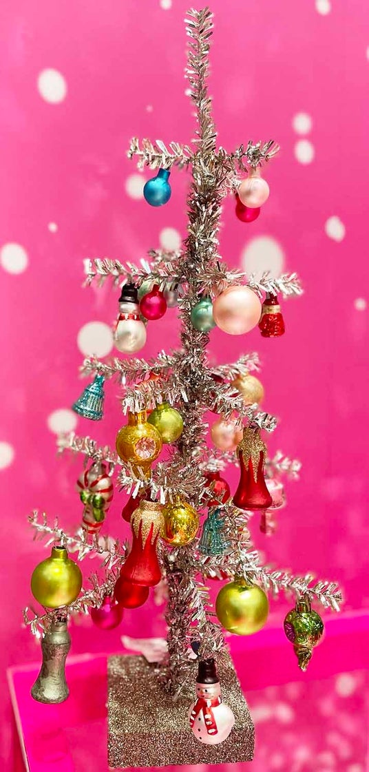 さまざまな卓上ツリー、オーナメントがそろう