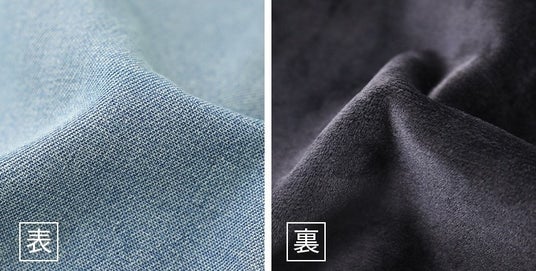 表側は使い込むほどに味が出てくるデニム生地、裏側は寒い季節に重ね着せず一枚でも安心して穿ける滑らかな肌触りであたたかい裏ベロア生地です。