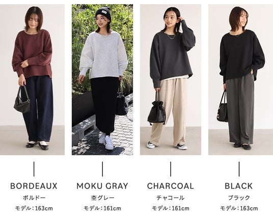 カラー:ボルドー、杢グレー、チャコール、ブラック