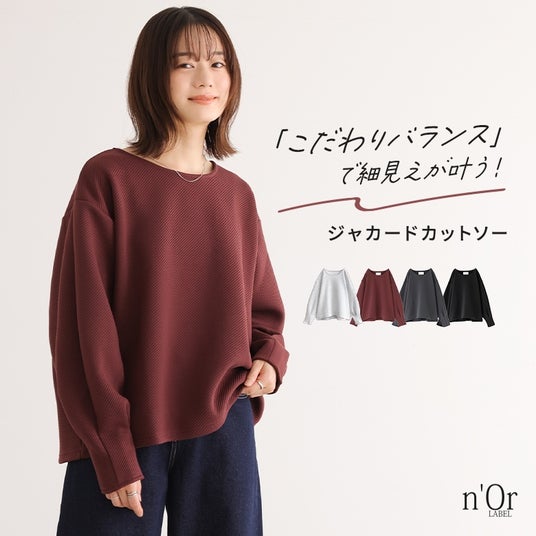 秋冬に最適な厚みのある柔らかなジャガードカットソーを使用し、伸縮性のある生地感で快適な着心地が叶います。斜めになったバイアス柄もさりげないポイントです。