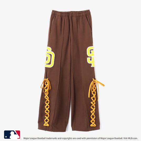 球団ロゴのビッグサイズワッペンを両脇にあしらったインパクトのあるスウェットパンツは、スニーカーをイメージした裾から膝にかけてのレースアップディテールはatmos pinkらしいアプローチです。バックポケットに配置したバッターマンロゴはオールド復刻デザイン。 ルーズフレアシルエットはスタイルアップ効果が期待できる嬉しいポイントです。