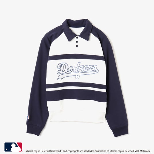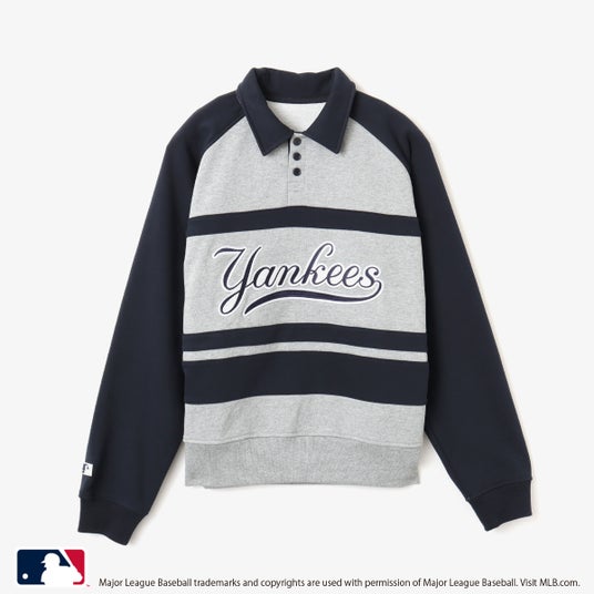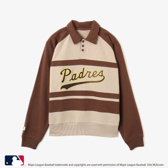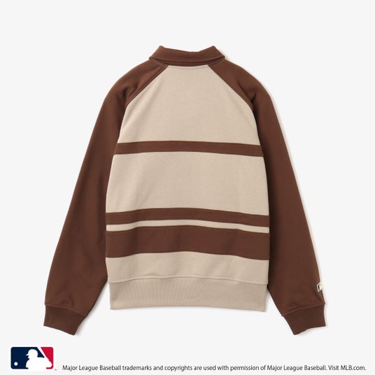 スウェットトップスはトレンドのポロデザインに。フロントには70年代に使用されていた球団ロゴが大胆に施されインパクトのある仕上がりです。球団ロゴに合わせた袖口のバッターマンロゴもオールド復刻デザインを設置。