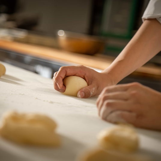 〔作り手の山崎隆二シェフ〕ジョエル・ロブションにてパン部門の立ち上げに関わり、帝国ホテルではシェフブーランジェを務めたのち、国際パンコンクール「クープ・デュ・モンド」で2002年に日本で初めて優勝したチームのリーダーとして活躍。2010年からカネカのテクニカルアドバイザーに就任。