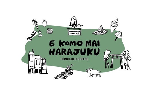 原宿店限定のノートやエコバッグなど、原宿をイメージしたデザインのグッズを販売。原宿らしいモチーフとともに、「E KOMO MAI HARAJUKU」(ハワイ語で「ようこそホノルルコーヒー原宿店へ」)という言葉をあしらい、ハワイのおもてなしの心を表現しています。