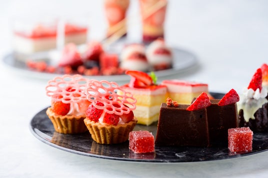 苺の鮮やかな赤色がショコラの濃い色合いと対比し、見た目も華やかでSNS映えもします。富山市内では、例年2月下旬頃まで雪が降り、窓から見える雪景色はアフタヌーンティーの色合いを更に引き立たせることでしょう。