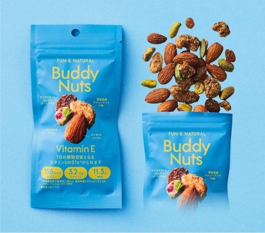 “令和を代表するナチュラルスナックカンパニーになる”をビジョンに掲げるスタートアップ、株式会社ラッキーモンスター(東京都世田谷区、代表取締役社長・亀岡 利寛)は、売上前年比348%※成長の管理栄養士・医学博士監修のココロ楽しい、カラダ嬉しい4種のすこやかナチュラルおやつ「BuddyNuts(バディナッツ)」を2024年11月15日(金)よりパッケージをリニューアルし新発売いたします。