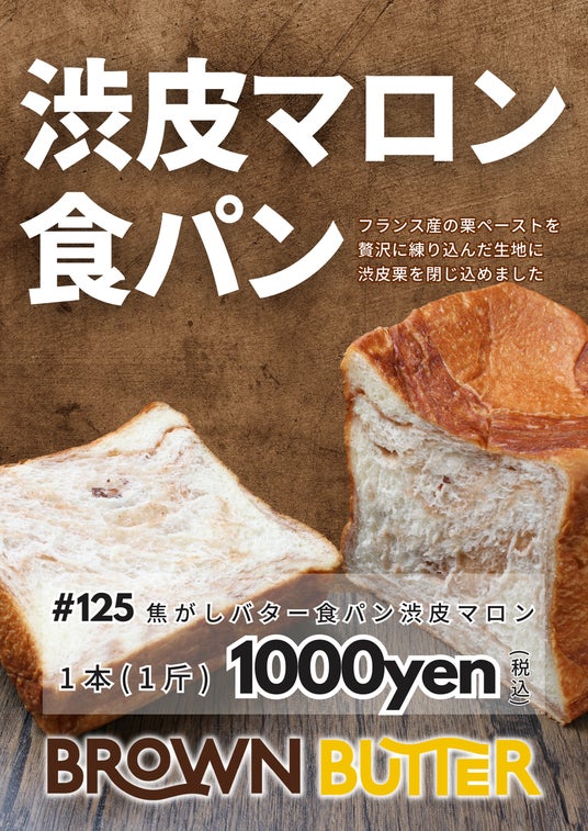 「BROWN BUTTER」が贈る秋の新作食パン、渋皮マロンとほうじ茶が登場!