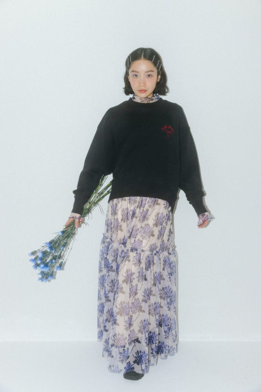 日常に寄り添うカジュアルなアイテムから、お出掛けに着ていける特別なアイテムまで、幅広いアイテムを展開。特に第一弾では、幅広い世代に利用いただける、日常使いにぴったりなスウェットや、一枚着るだけでおしゃれになるシアーワンピース、チュールスカートなどを販売。