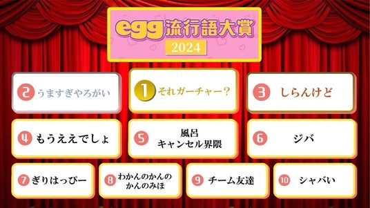 「egg」は、2024年のギャル流行語に関するアンケートを実施し、その集計結果を「egg流行語大賞2024」として発表いたしました。ギャル文化を象徴する個性的なワードが数多くランクインしております。