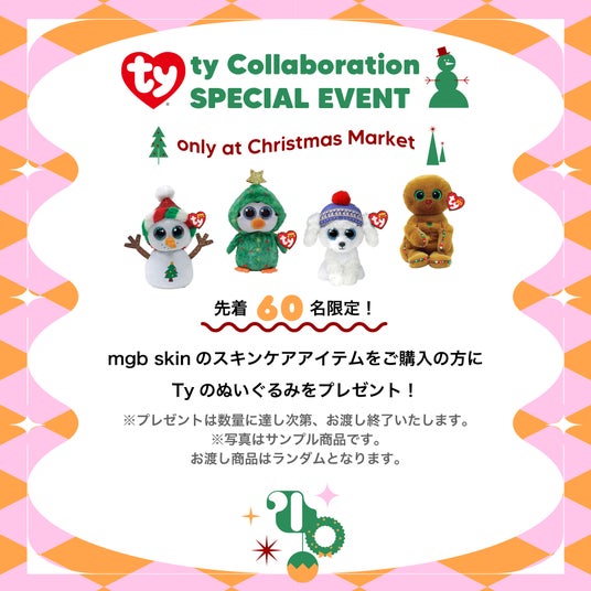 3.スペシャルイベント先着60名限定!mgb skinのスキンケアアイテムをご購入の方にTyのぬいぐるみをプレゼント!