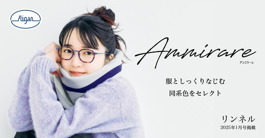 メガネ・補聴器を販売する「メガネの愛眼」「Aigan」 ( https://www.aigan.co.jp/ )を運営する愛眼株式会社(本社:大阪市天王寺区、代表取締役社長:佐々 昌俊)は、24種類の多彩なバリエーションで誕生したメガネの愛眼の新作メガネAmmirare(アンミラーレ)と、雑誌宝島社・リンネル2025年1月号とタイアップしたことをお知らせいたします。コーデに合わせて選べるAmmirareの魅力を3つのスタイルに分けて、女優、上白石萌音さんがトライしてくれました。リンネル2025年1月号は2024年11月20日(水)発売。