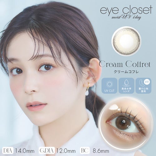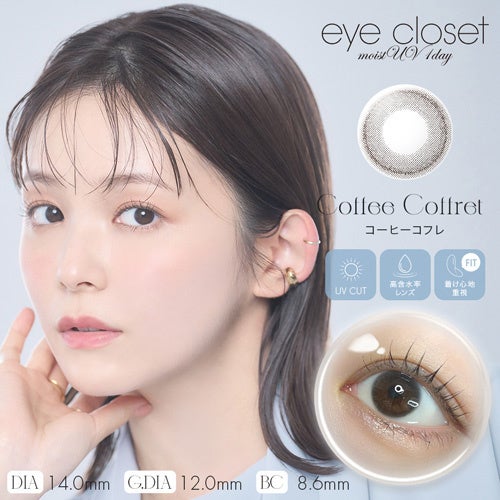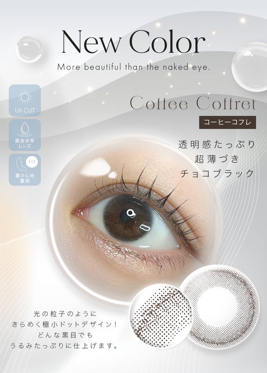 「瞳に艶を。瞳をより綺麗な瞳に。」をコンセプトに、史上最も薄づきのカラーコンタクト『eye closet MOIST UV 1day』から新色『コーヒーコフレ』を発売いたします。光の粒子のようにきらめく極小ドットデザインで、うるみたっぷりの黒目に仕上げます。