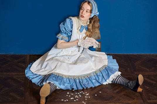 ルイス・キャロル没後100年を経ても愛され続ける「不思議の国のアリス」の世界を再現したシリーズ。名場面の「EAT MEクッキー」や「DRINK MEボトル」からインスパイアされ、クラシカルなフィット&フレアシルエットと豪華な装飾で仕上げました。