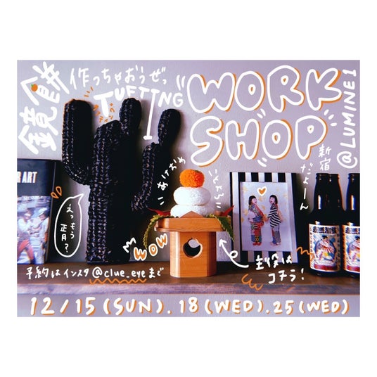 「eye」は、お正月シーズンに合わせて鏡餅の立体ラグを作るタフティングのワークショップ(※有料)、「naproom & 1ROOM by naproom」では、Xmasミニモビールワークショップ(※有料)をお楽しみいただけます。
