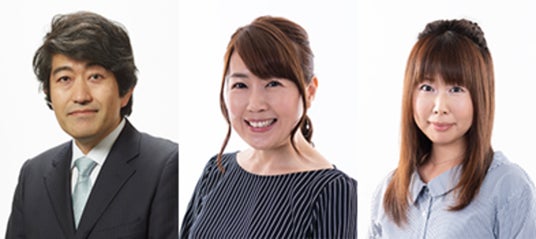 (写真)左から 解説/森内俊之 九段 聞き手/岩根 忍 女流三段 読み上げ/高浜愛子 女流初段