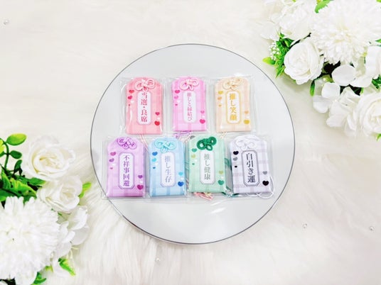 リニューアル版「推し好き守り」を35個以上(各色5個ずつ)ご購入いただくと、今なら+14個を無料でお付けいたします(各色2個ずつ)