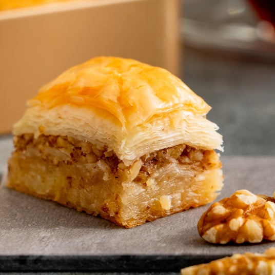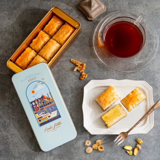「バクラヴァ」とはパイ生地を何十層にも手作業で重ね、ピスタチオやくるみ、ヘーゼルナッツ等のナッツを挟みバターシロップをかけて焼き上げるオスマン帝国時代から愛されている焼き菓子です。トルコ・イスタンブールの本店と同じ味わいをお楽しみいただけます。常温でお日持ちもするので、珍しい特別な手土産としてもおすすめです。