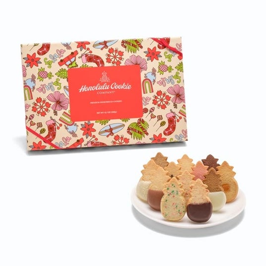 3.2種類のシグネチャー・フレーバーと、ホリデー・コンフェッティ、ペパーミント・マカダミア、ダーク・チョコレート・パパーミント・マカダミアとホワイト・チョコレート・ジンジャー・スパイスのホリデー限定フレーバー4種類のショートブレッド・クッキーが入った15枚入り。