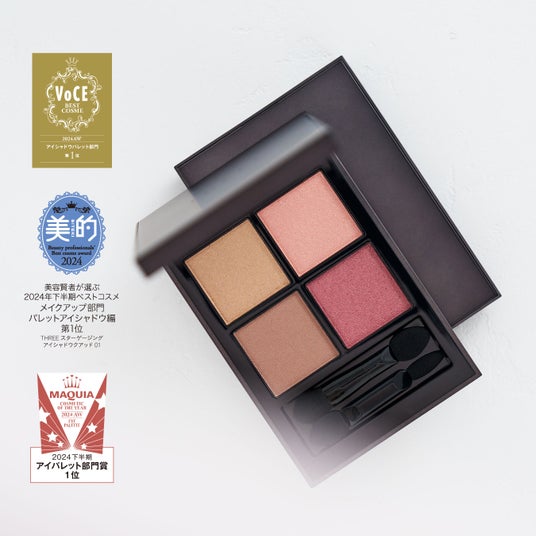 2024年下期ベストコスメにおいて、THREEの新しいアイカラーパレット「THREE スターゲージングアイシャドウクアッド」が、美容誌「VOCE」「美的」「MAQUIA」の該当部門において第1位を受賞、その他媒体でも続々と賞をいただいています。