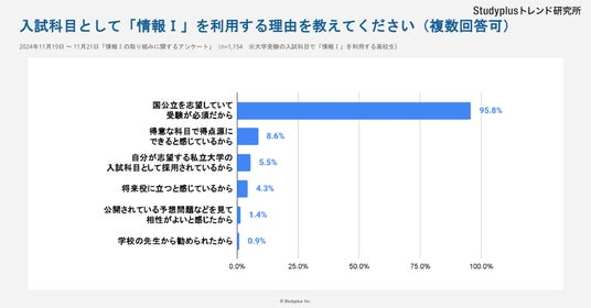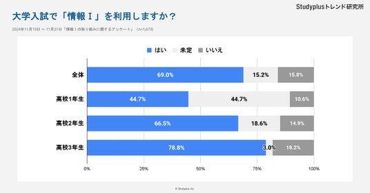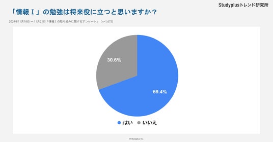 スタディプラス株式会社(本社:東京都千代田区、代表取締役:廣瀬高志、以下スタディプラス)のStudyplusトレンド研究所は、2024年11月19日(火)から11月21日(木)にかけて学習管理アプリ「Studyplus」上で全国の高校生を対象に「情報Iの取り組みに関するアンケート」を実施、1,673名から回答を得ましたのでご報告いたします。