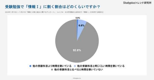 「情報I」を受験科目として使う予定の人を対象に、「情報I」の受験勉強をどの程度しているのか聞いたところ、他の教科に比べて時間を割いていないと答えた学生が9割以上となりました。