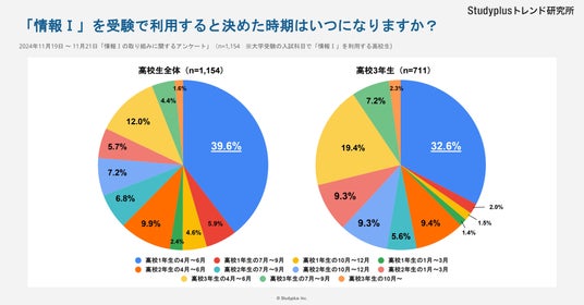 「情報I」を利用すると決めた時期について聞いてみたところ、一番多かったのは「高校1年生の4~6月」となりました。高校3年生のみに絞っても同じ結果となります。これは、「情報I」が受験科目に必須となっている「国公立大学への受験」を高校1年生の早期から見据えているためではないかと考えられます。
