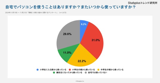 自宅でパソコンを使っていない高校生も3割程度いたものの、6割近くが高校に入る前からパソコンを使った経験があることがわかります。中には、小学生になる前の幼少期からパソコンに触れている人もいるようです。