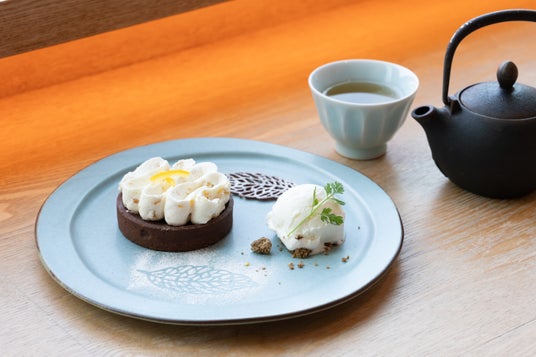 神楽坂 茶寮/14階/「柚子とチョコレートのタルト ペアリングのお茶付き」